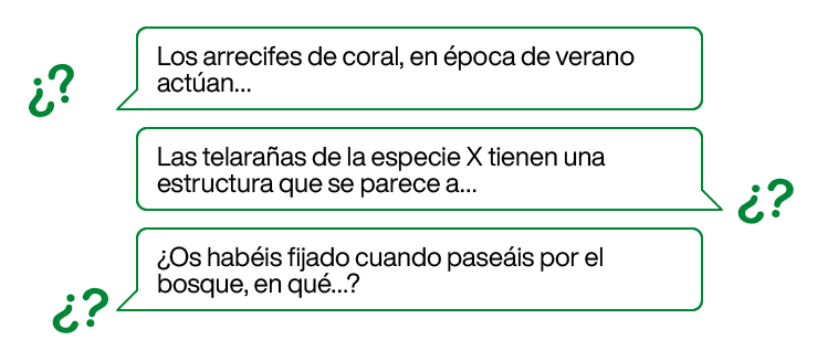 Consejo: Organiza salidas al aire libre o sesiones para ver documentales sobre la naturaleza. Toma notas o fotografías de patrones o comportamientos que llamen tu atención.